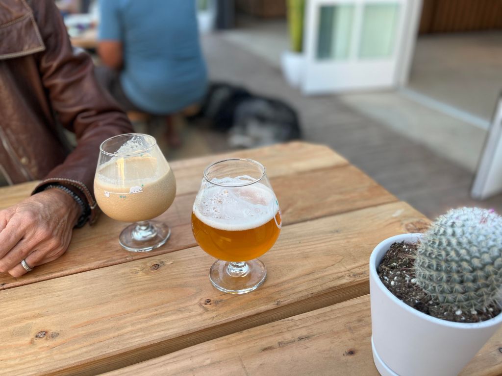 Next, I waited in the fast-moving line to grab a flight for myself and a 10 oz pour of Shepherd of the Stars for Helen — a high-alcohol, boozy, slightly sweet Hazy IPA that has become her favorite style. Tonight’s SOTS was what Pure calls a Murky Quad IPA, and it checked all the right boxes for her.