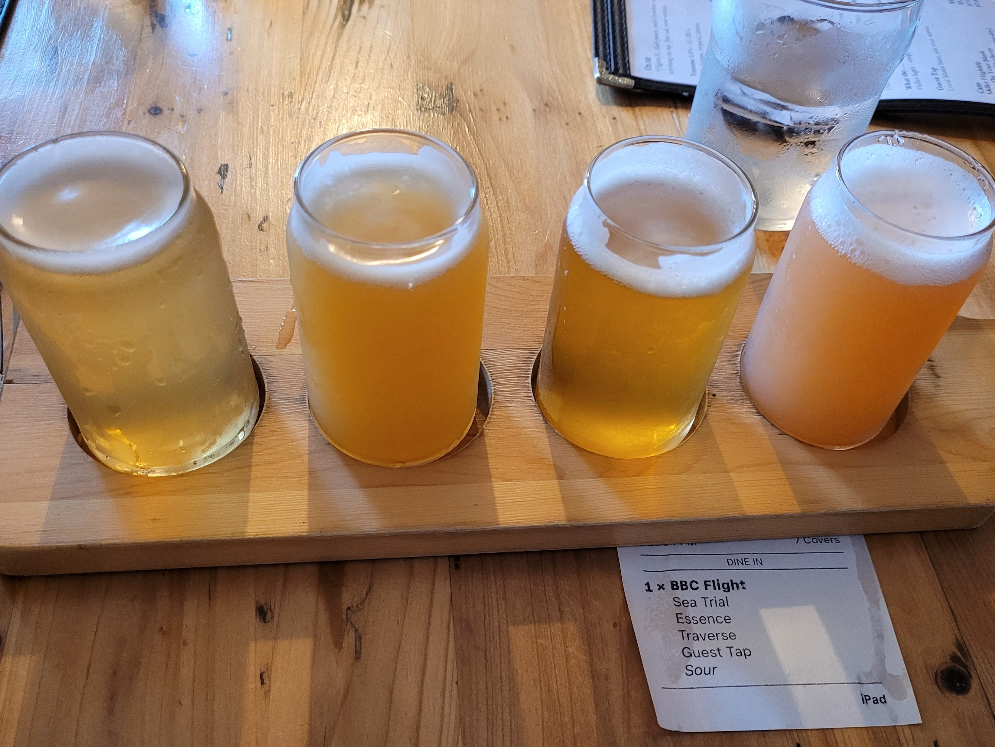 I ordered a flight of three Bath Brewing brews and a guest tap.