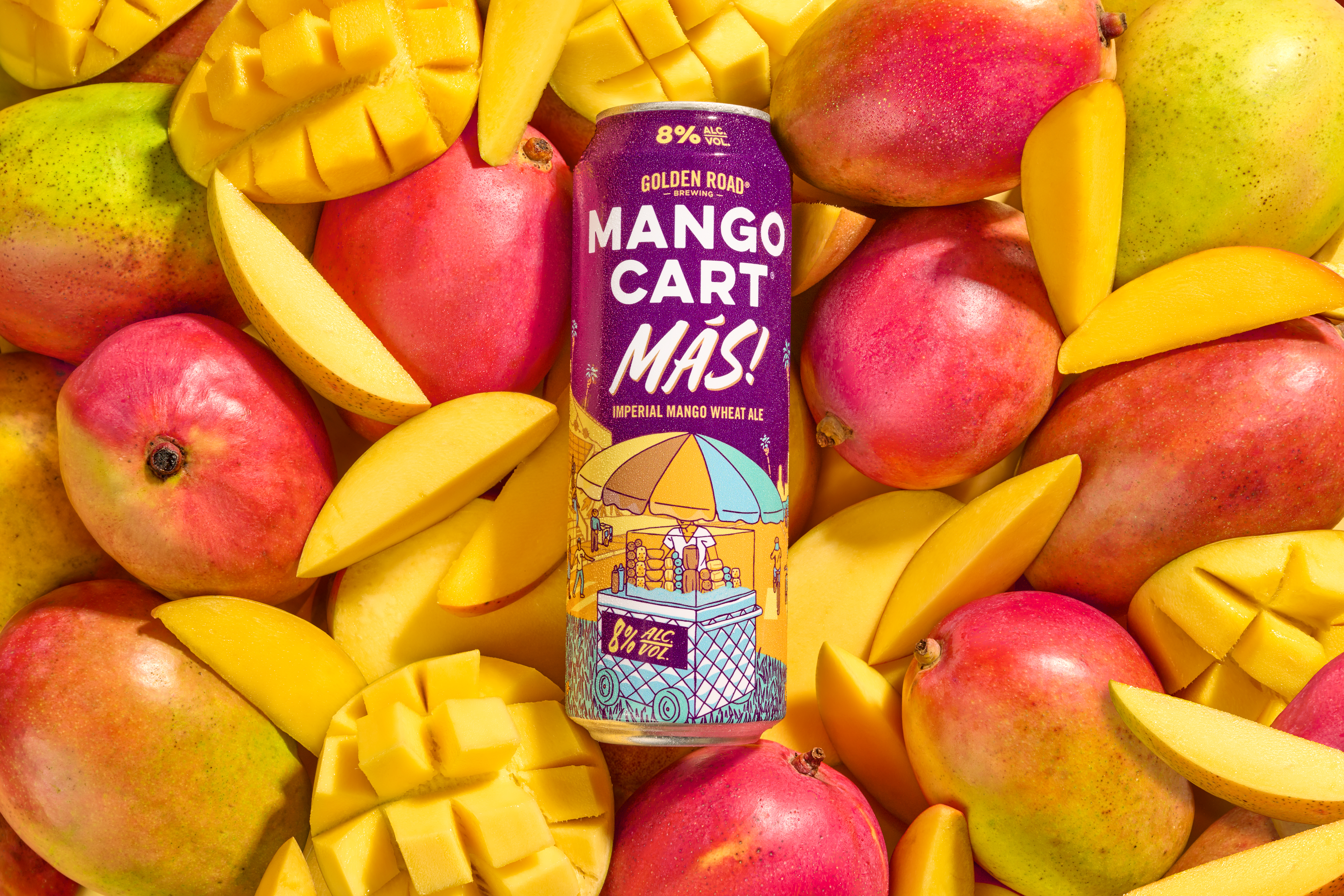 Mango Cart Más—an Imperial Mango Wheat Ale—drops today, March 23, and is now available at convenience stores and on draft at Golden Road Brewing locations throughout Southern California.